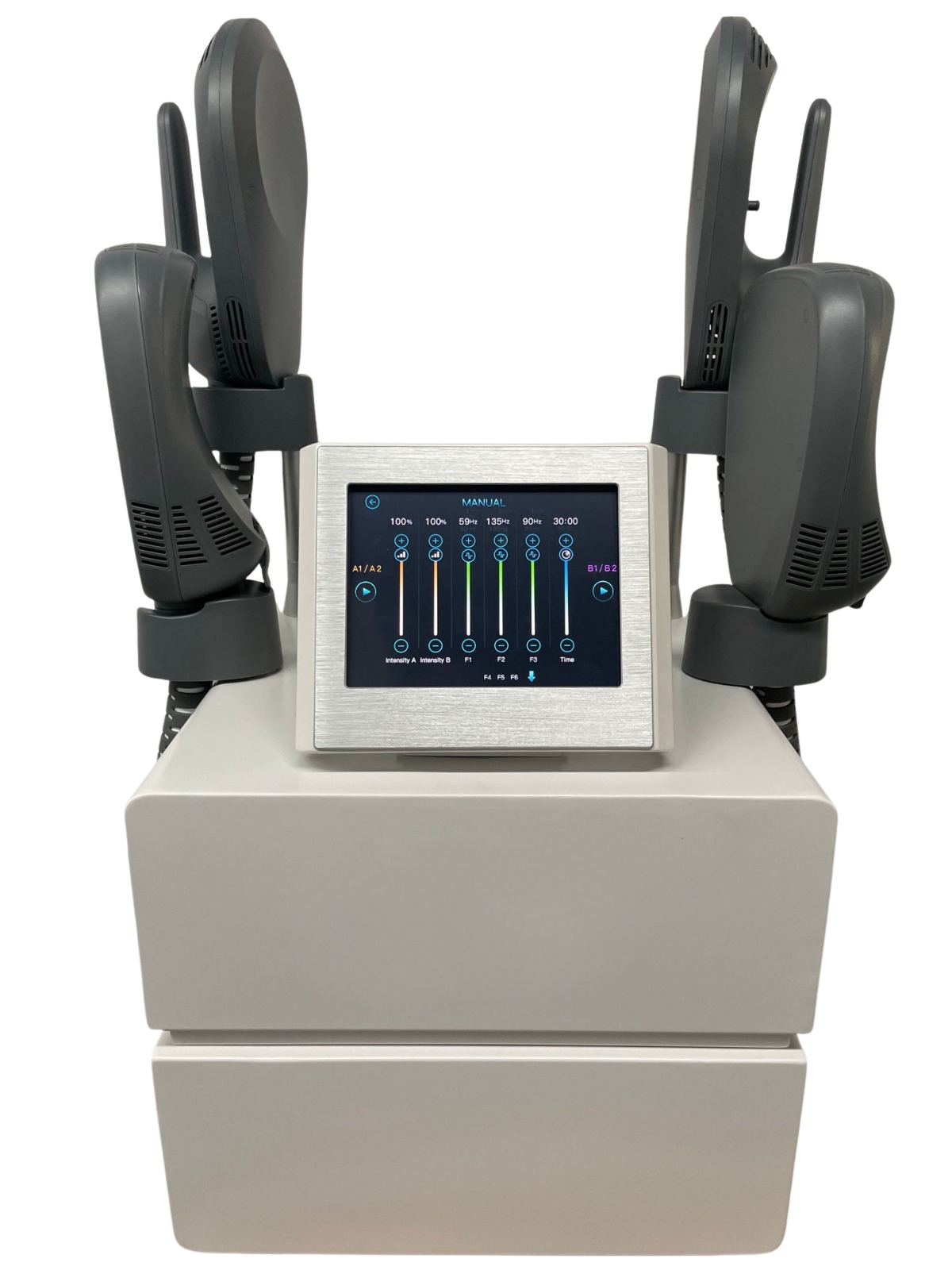 A BBS-67 HIEMT készülék 4 darab nagy teljesítményű elektromágneses kezelőfejjel érkezik, amelyek ehetővé teszik több testterület egyidejű kezelését.