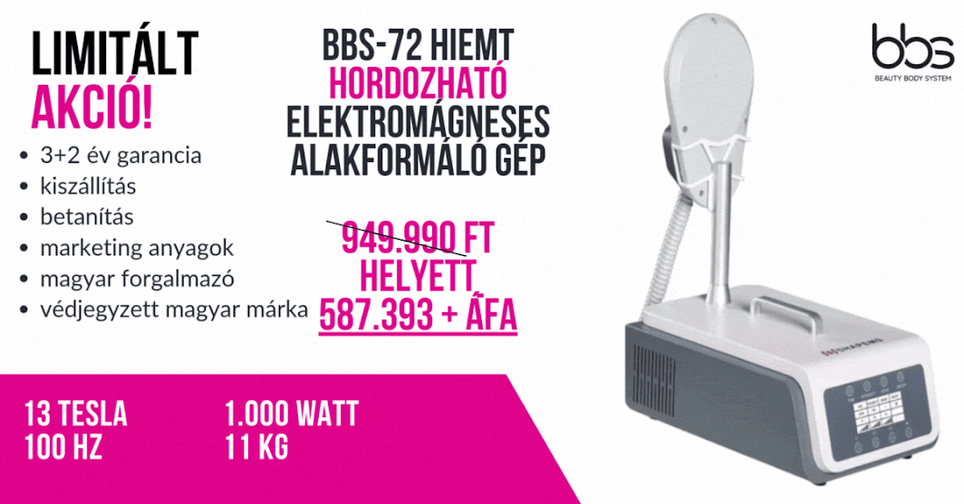 - A gép gyakorlatilag egy hét alatt is vissza tudja hozni az árát napi 8-10 vendég esetén (kezelésenként 30 perc) Napi 2 vendég esetén is 8 hét alatt maximálisan vissza hozza az árát.